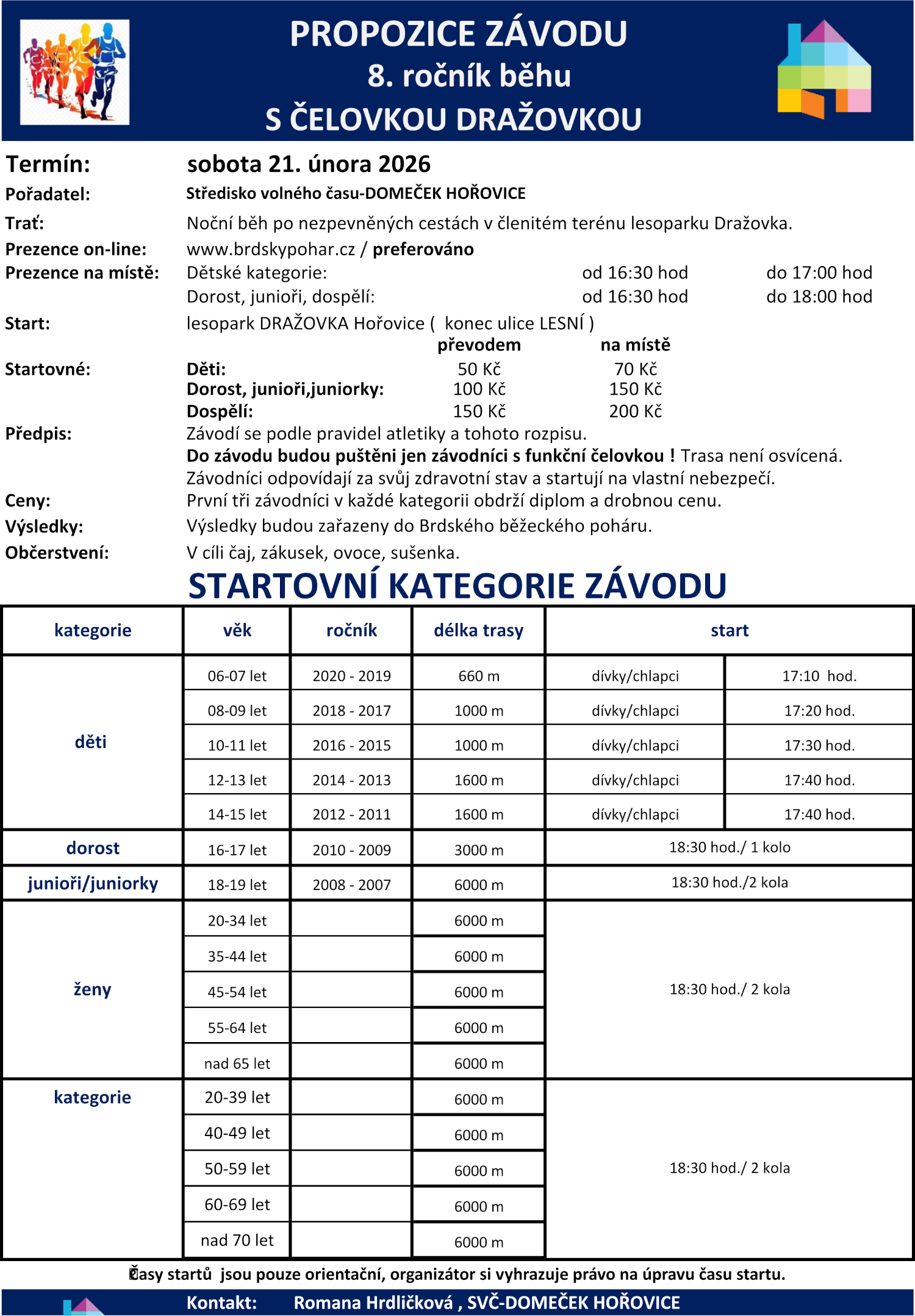 domecekhorovice.cz Přihlášky Info k závodu