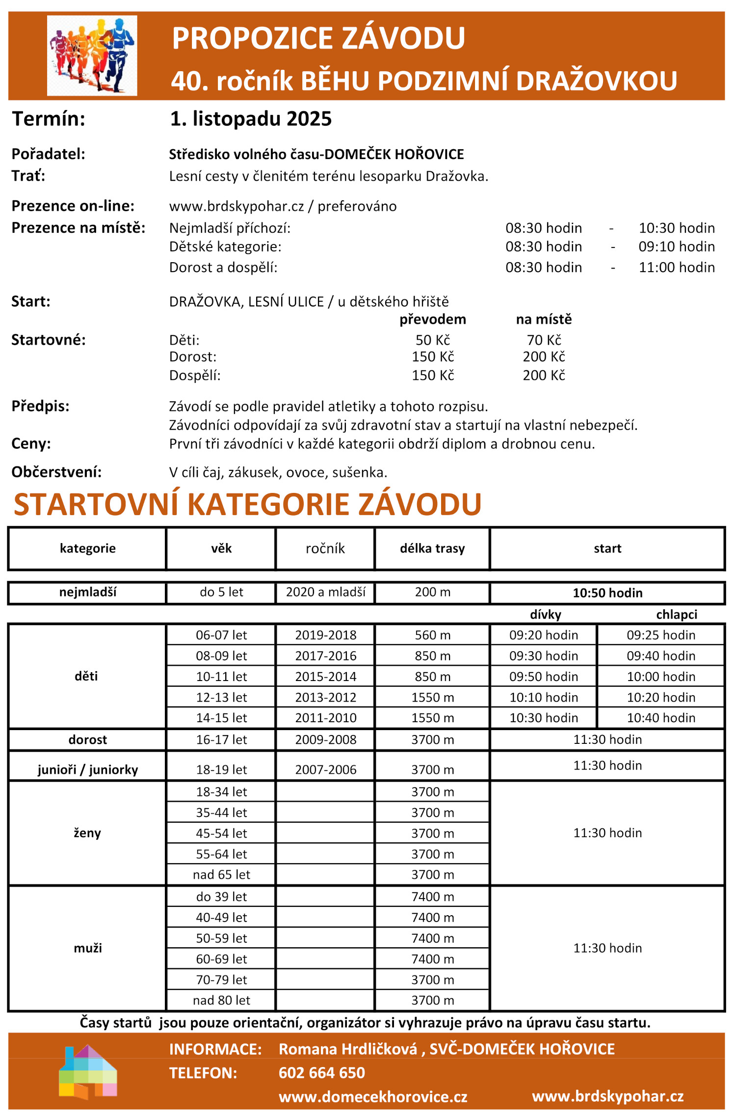 Dětské závody - Prezence, vyzvednutí startovních čísel a čipu - Nový rybník - dřevěný altán od 8:00. | |||