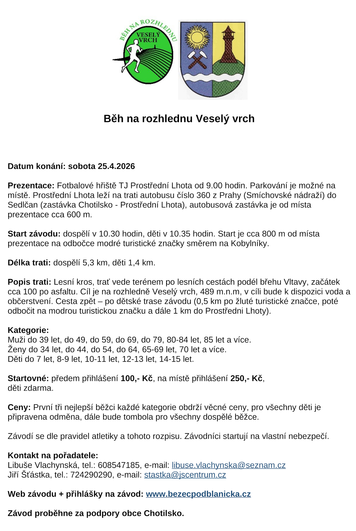web závodu Propozice přihlášky
